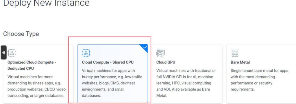 选择服务器套餐。根据自己的需求来选择,如果服务器位置定了,套餐不影响速度,影响流量和配置,一般用的人数少,选择低配置就够了。便宜的套餐,点击Regular Cloud Compute,选择第一个套餐,提示升级选择No Thanks。